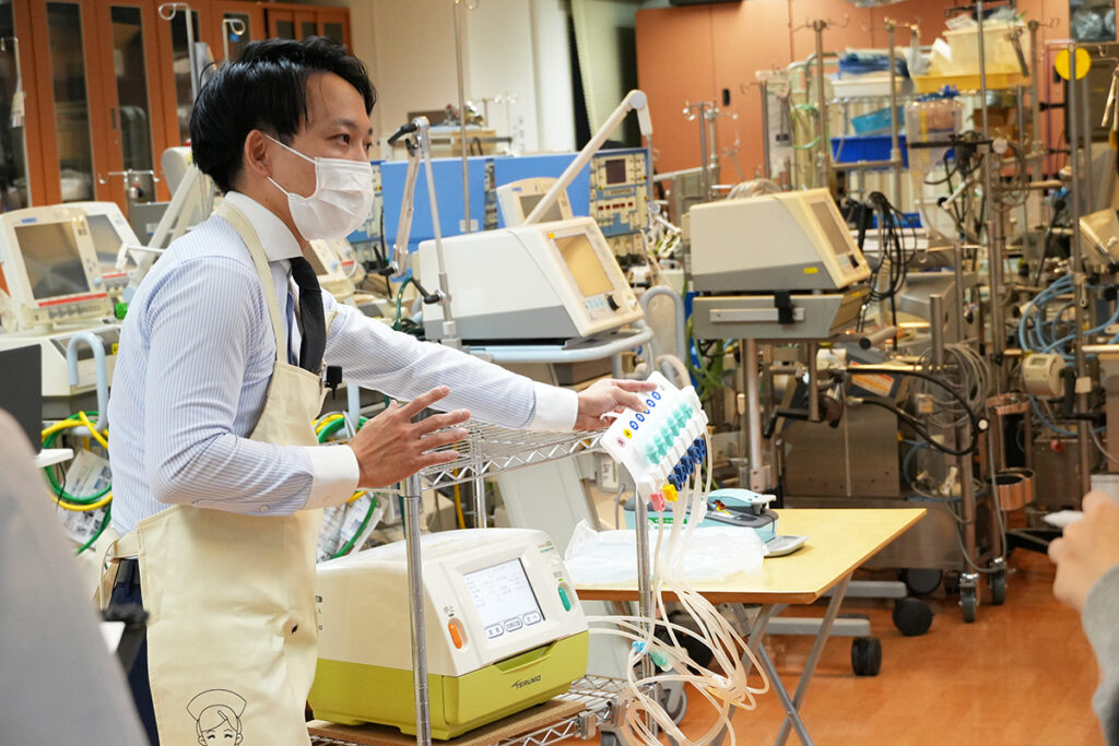 今回は実際に医療現場で使用されている腹膜透析装置の開発メーカーである、テルモ株式会社様をお招きし、講義とデモンストレーションを実施いただきました。