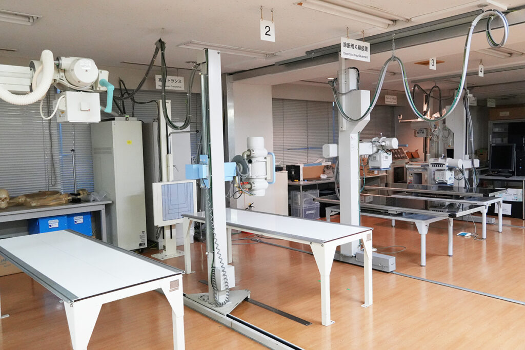 こちらの授業は名前の通りX線撮影の技術を、機器を使った実践を通して身につける実習。