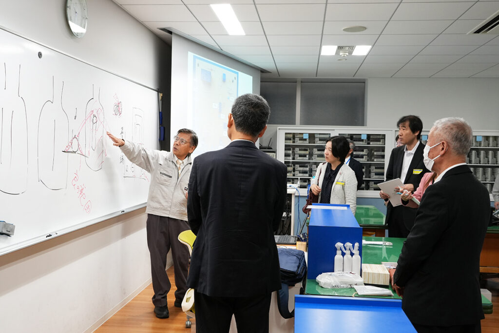 授業視察では、ものづくりマイスターが、学生一人ひとりに対し丁寧に技術を伝えている様子をご覧いただきました。