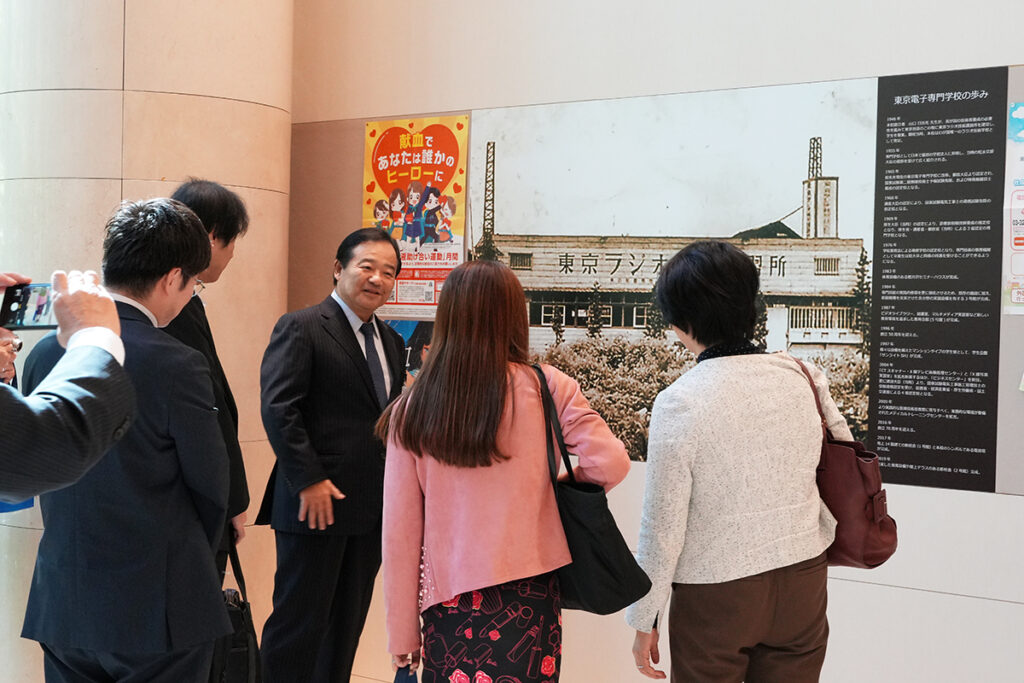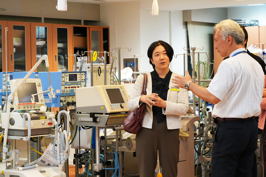 電子技術科の実習室のほか、医療技術系の臨床工学科の実習室もご覧いただき、学部長による説明が行われました。