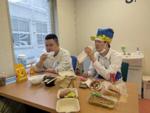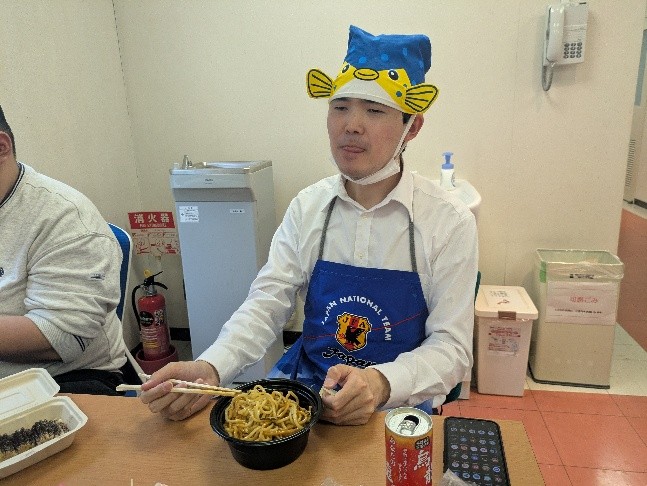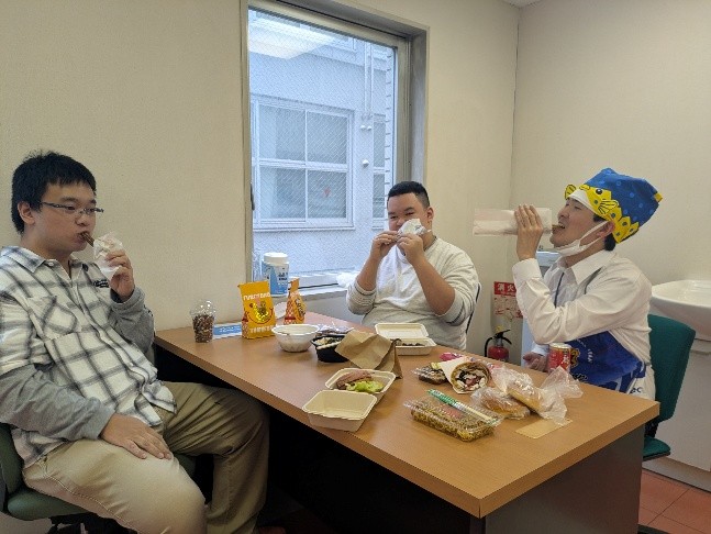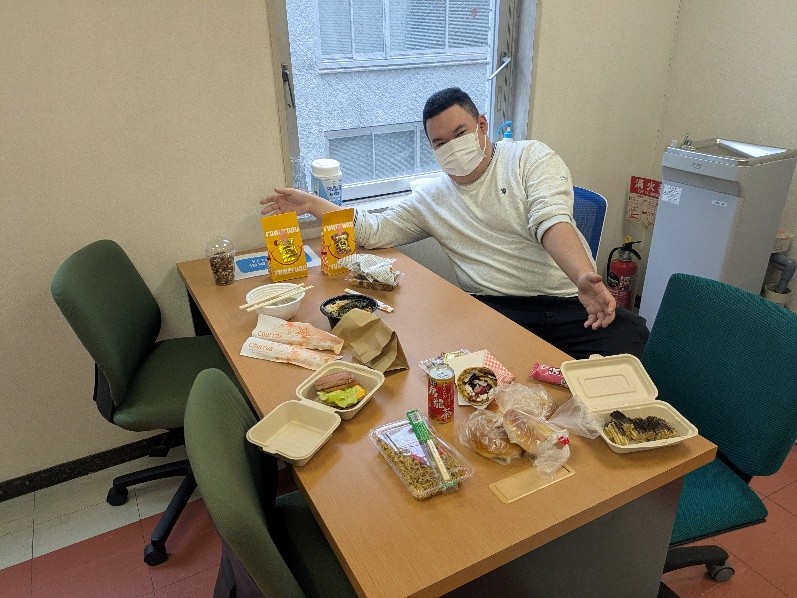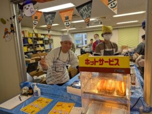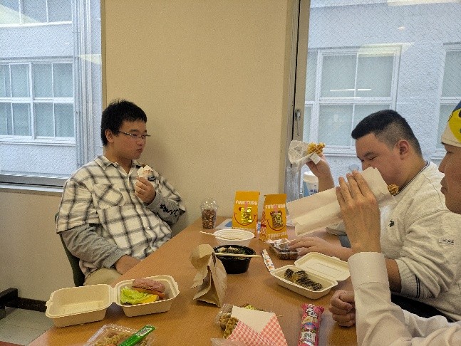 また、電子技術科の勝手な企画として、「他学科の模擬店すべてを食べつくそう!」という企画を行いました。焼きそば、クレープ、たこ焼き、フライドポテトなど、出展されていたすべての飲食企画を制覇することができました。どの模擬店も個性があり、それぞれの学科の工夫が感じられました。食べ歩きを通して他学科の雰囲気にも触れ、学生同士の交流が深まった1日となりました。