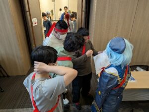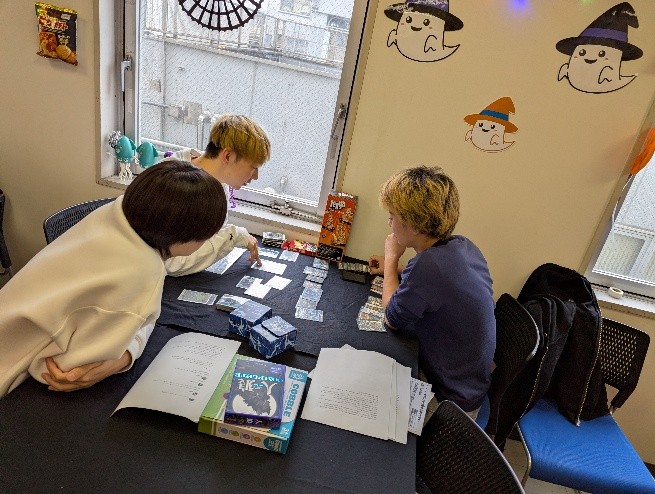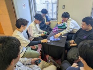 「ボードゲーム」コーナーでは、電子技術科の学生おすすめのゲームを用意し、来場者と一緒に楽しみました。対戦中は笑い声が絶えず、知らない人同士でも自然と会話が生まれるほど盛り上がりました。ゲームを通じて、学科や学年の垣根を越えた交流ができたのは大きな収穫です。