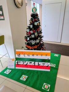 本部企画のクリスマスツリーコンテストにも参加しました。電子技術科の展示場所が10階のセブンイレブン前だったのでセブンイレブンさんへの日頃の感謝を込めてツリーを作成しました。