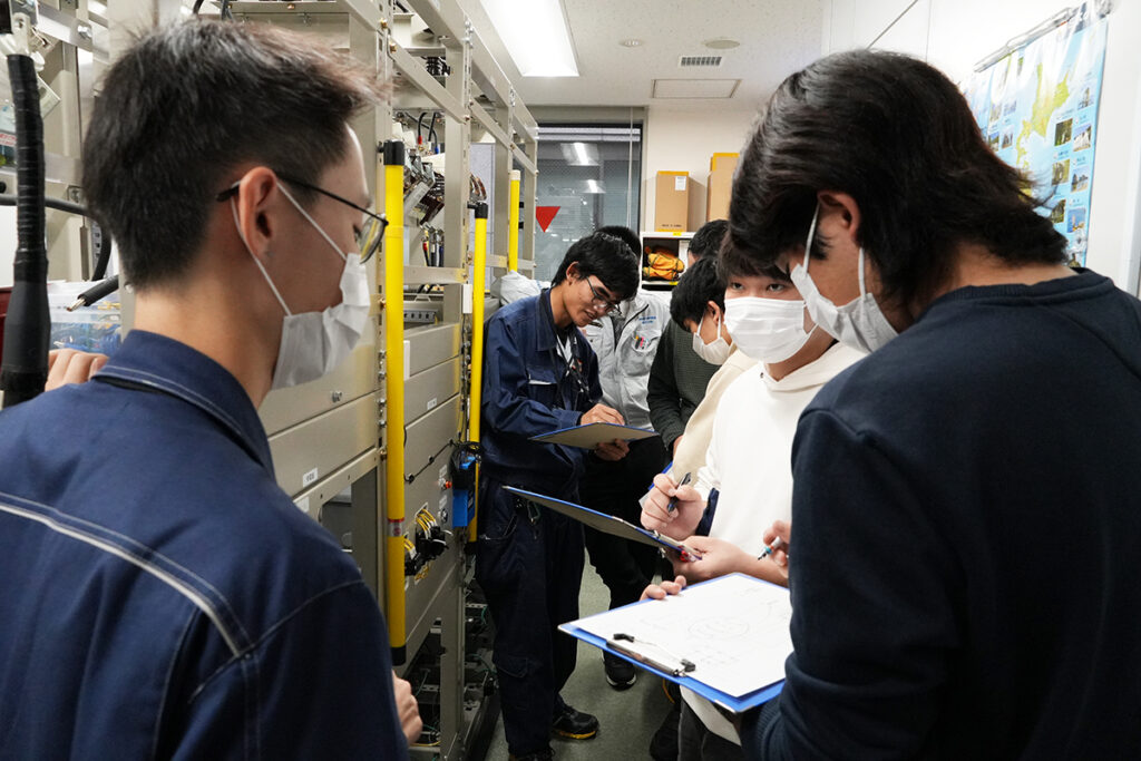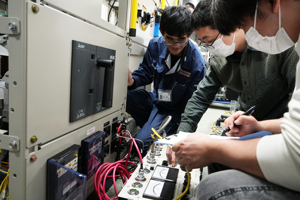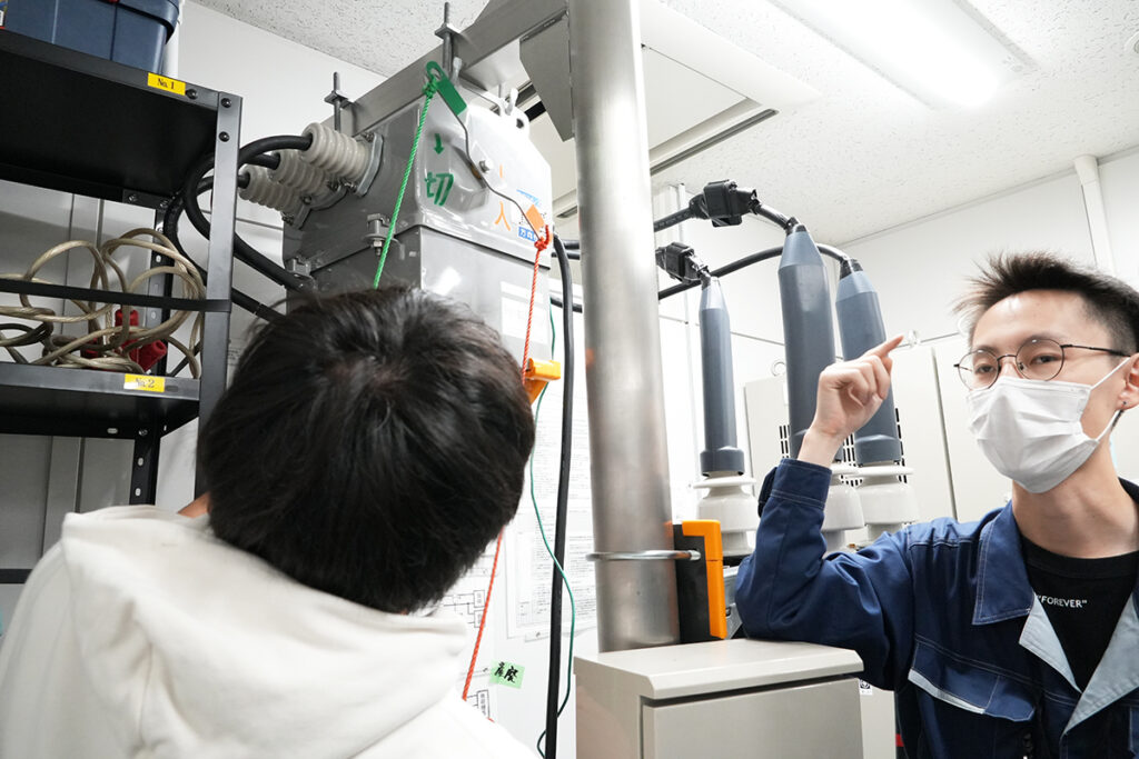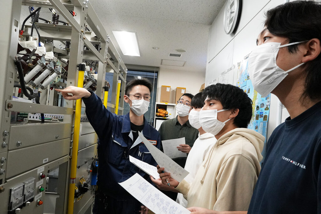 電気工学科ではこのように、業界の各企業様ご協力のもと、強電エンジニアとして現場で役立つ実践的な知識を身につけることができる機会を積極的に取り入れています。