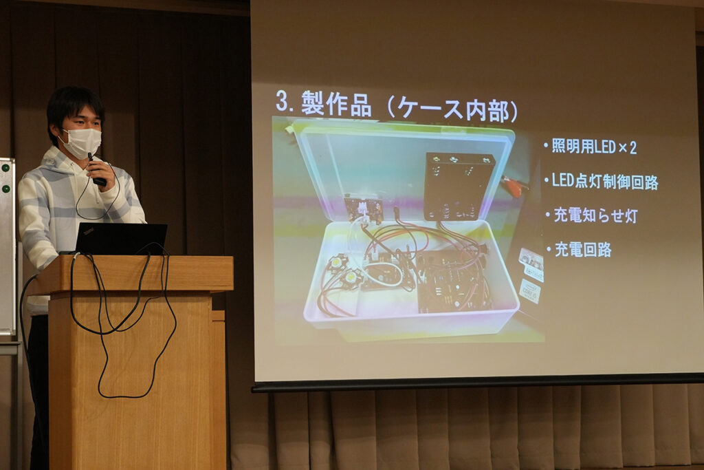 各発表を通じ、東京電子の電子技術科で2年間学び身につけた技術力を、自分自身が決めたテーマに沿ったモノづくりを通して発揮し、実際に形になる感動を実感することができました。