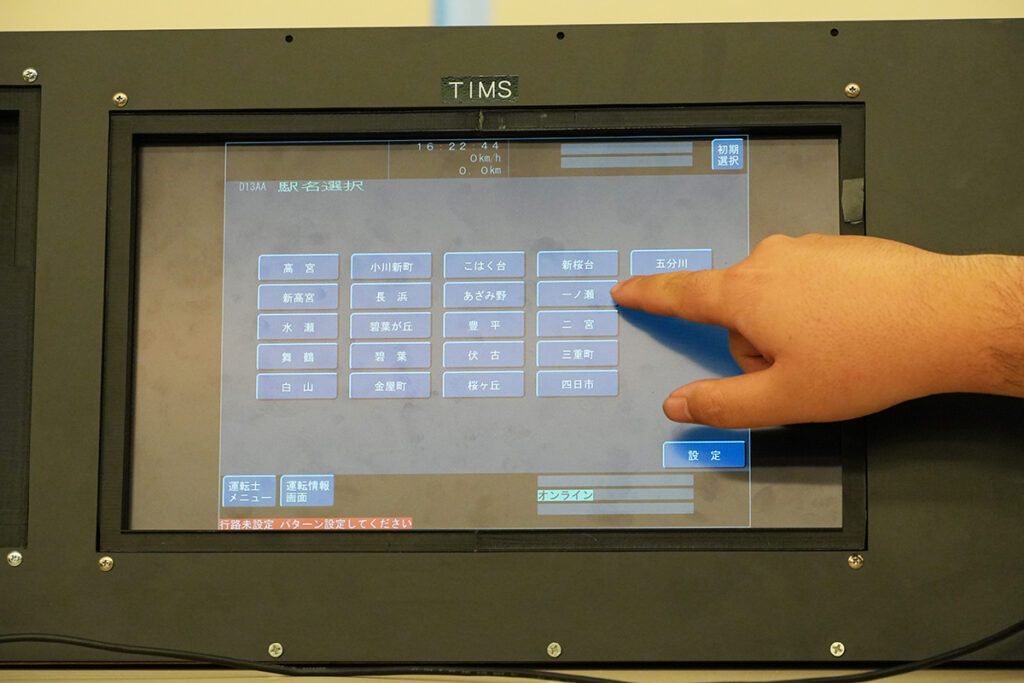 実在する鉄道の運転台を模し、実際に運転に必要な操作・情報表示を行えるタッチパネルを搭載した本格仕様です。