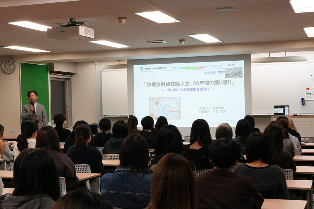 ▼診療放射線学科、情報システム系学科では卒業生が講演に来てくださいました。